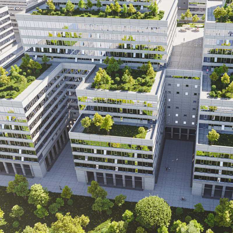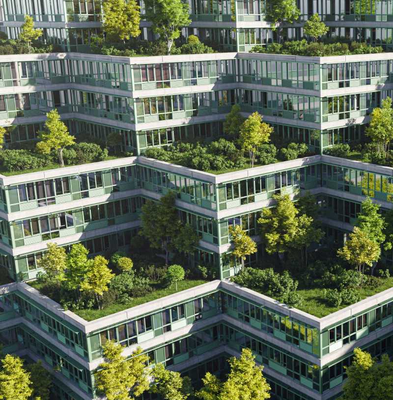 Transform your building into a green oasis with vertical and roof gardens, improving air quality and providing natural insulation.
